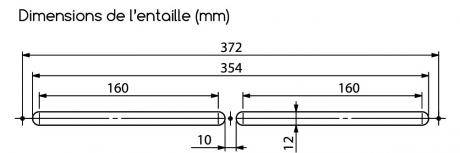 Montage sur entaille : 354 x 12 mm.