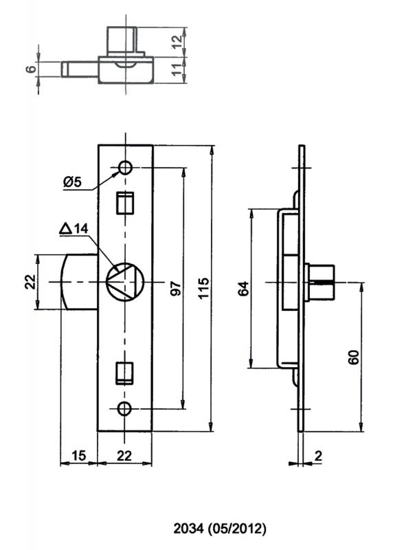 En applique, en acier zingué blanc. Réversible. Triangle de 14 mm.
