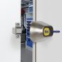 Verrouillage automatique (sans utilisation de la clé) en poussant la porte jusqu'en butée sur l'autre, ou bien en fermant la porte coulissante latérale.