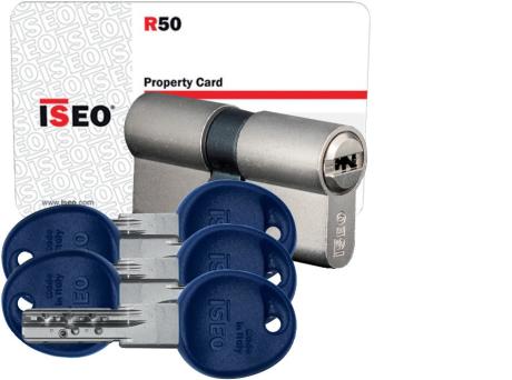 Cylindre nickelé 14 goupilles inox. Antiperçage. Clé plate réversible brevetée (jusqu'en 2020) avec carte de propriété.