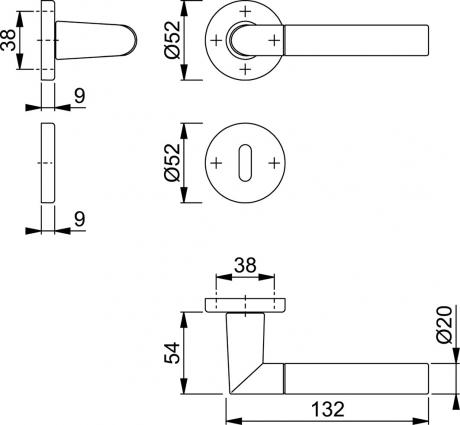 Ensemble complet en aluminium sur rosaces Ø 52 mm. Carré à montage rapide.