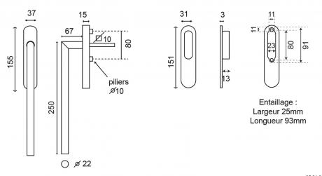 Vantail de 56 à 92 mm d'épaisseur.