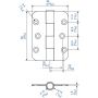 Charnière 80 x 60 mm, axe Ø 10 mm. Fixation sur chant.