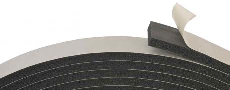 Mousse à face adhésive à cellules fermées conçue pour éviter le vrillage lorsqu'elle est clouée, agrafée ou vissée. Prévient les infiltrations d'eau, d'air et de gaz.