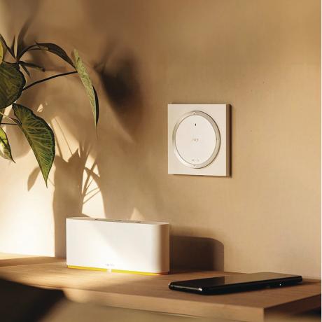 Avec son capteur de température intégré, AMY rend les protections solaires intelligentes, les baissant automatiquement avant qu'il ne fasse trop chaud. Montée/stop (my bouton)/descente.