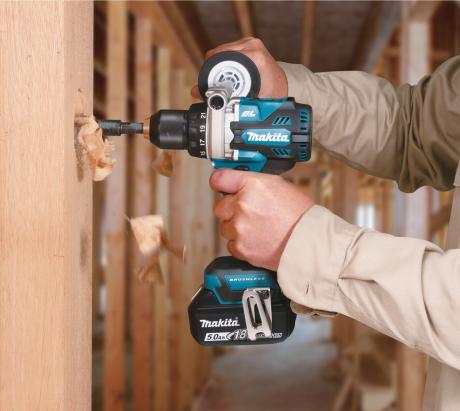 Livrée avec 2 batteries 18 V 5 Ah, un chargeur rapide, un crochet ceinture, une protection pour batterie et 2 embouts de vissage double PH2/plat dans un coffret MAK-PAC.