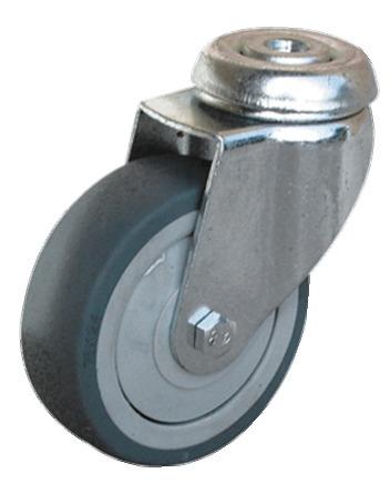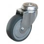 Pivotement sur 2 couronnes de billes en acier traité, graissées. Roue : bandage plein en caoutchouc thermoplastique gris non tachant. Moyeu lisse.
