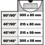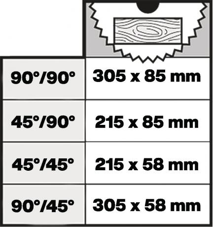 Angles de rotation de la tête de scie préréglés à 15°, 22.5°, 30°, 45°, 90° et positionnement rapide jusqu’à 50°.