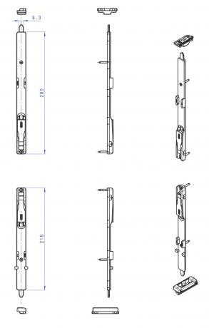 Paire de verrous en applique pour ouvrant semi-fixe avec gâche, pour profils à gorge européenne.